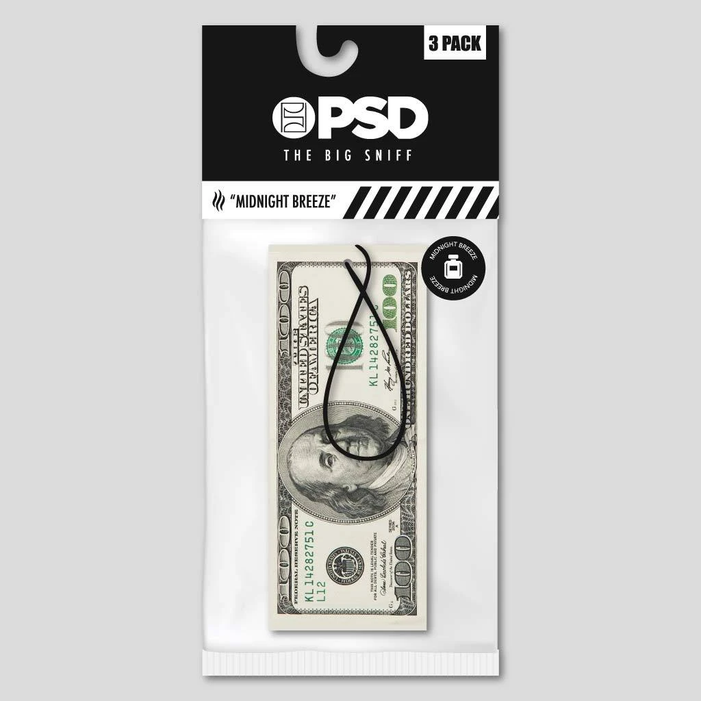 Give your car a new style and scent with PSD’s new “100 Bucks” air freshener 3-pack. With a large photo of a $100 dollar bill and a “Midnight Breeze” scent, this air freshener will do its job freshening your car in style.